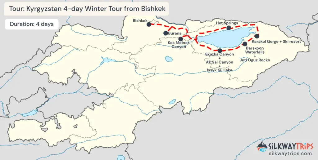 Later, we head to Jeti Oguz Rocks, where the “Seven Bulls” rise in deep red contrast against the green slopes. Here, we’ll walk to a panoramic viewpoint.