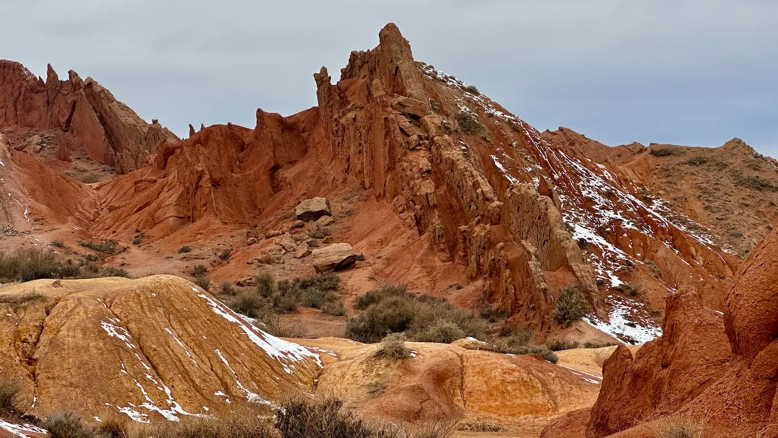 After lunch at the guesthouse, we’ll drive toward the Kok Moinok canyon, known for its vivid red and golden rock formations. A short winter walk leads to a viewpoint overlooking the canyon and Issyk Kul in the distance.